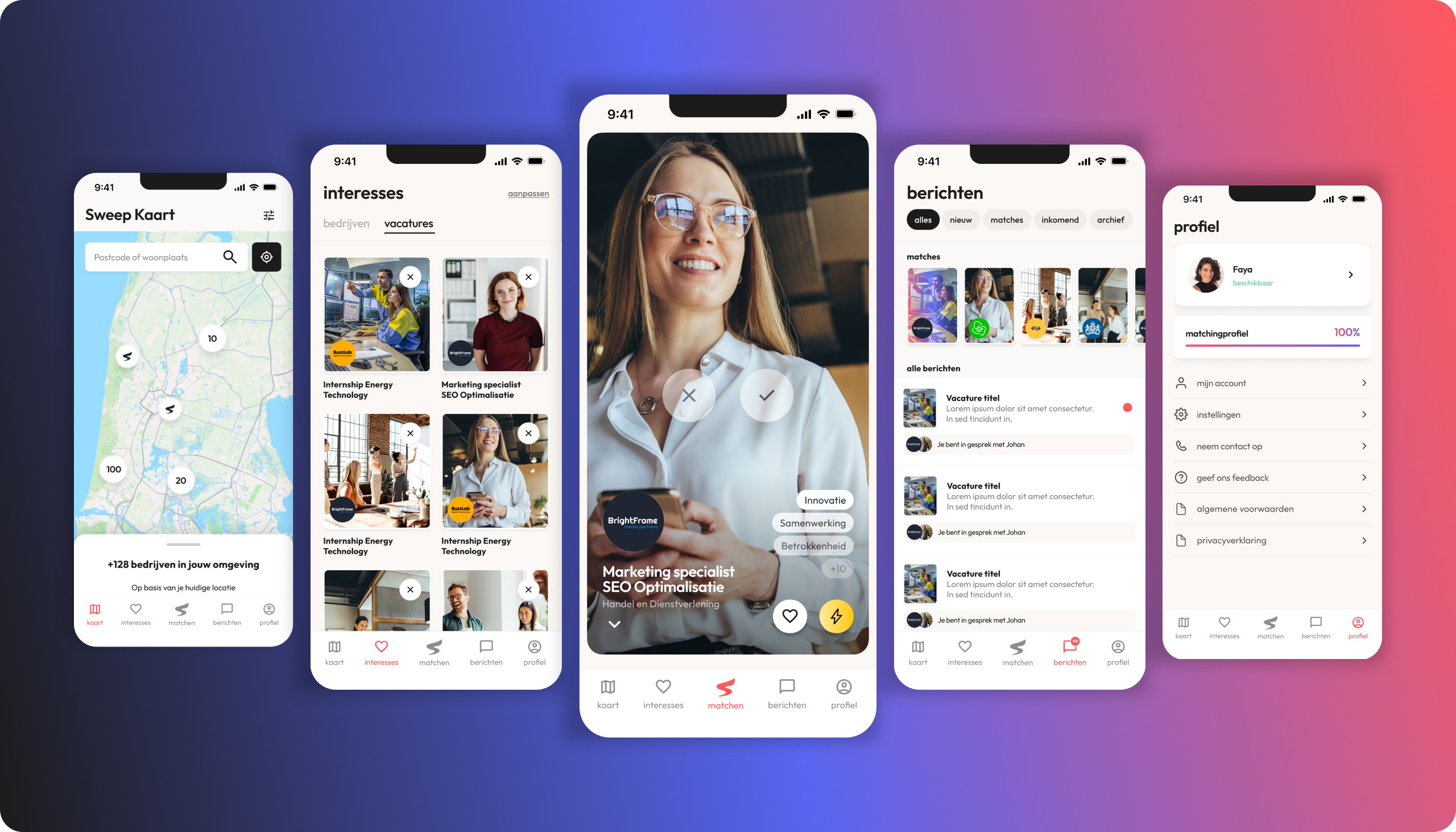 Sweep kwam naar ons toe om een app te ontwikkelen die latent werkzoekenden helpt nieuwe werkuitdagingen te vinden. De app is ontworpen om mensen te verbinden met kansen die ze misschien niet zelf hadden overwogen. Door de app kunnen gebruikers vacatures ontdekken op basis van hun interesses, vaardigheden en ervaringen.